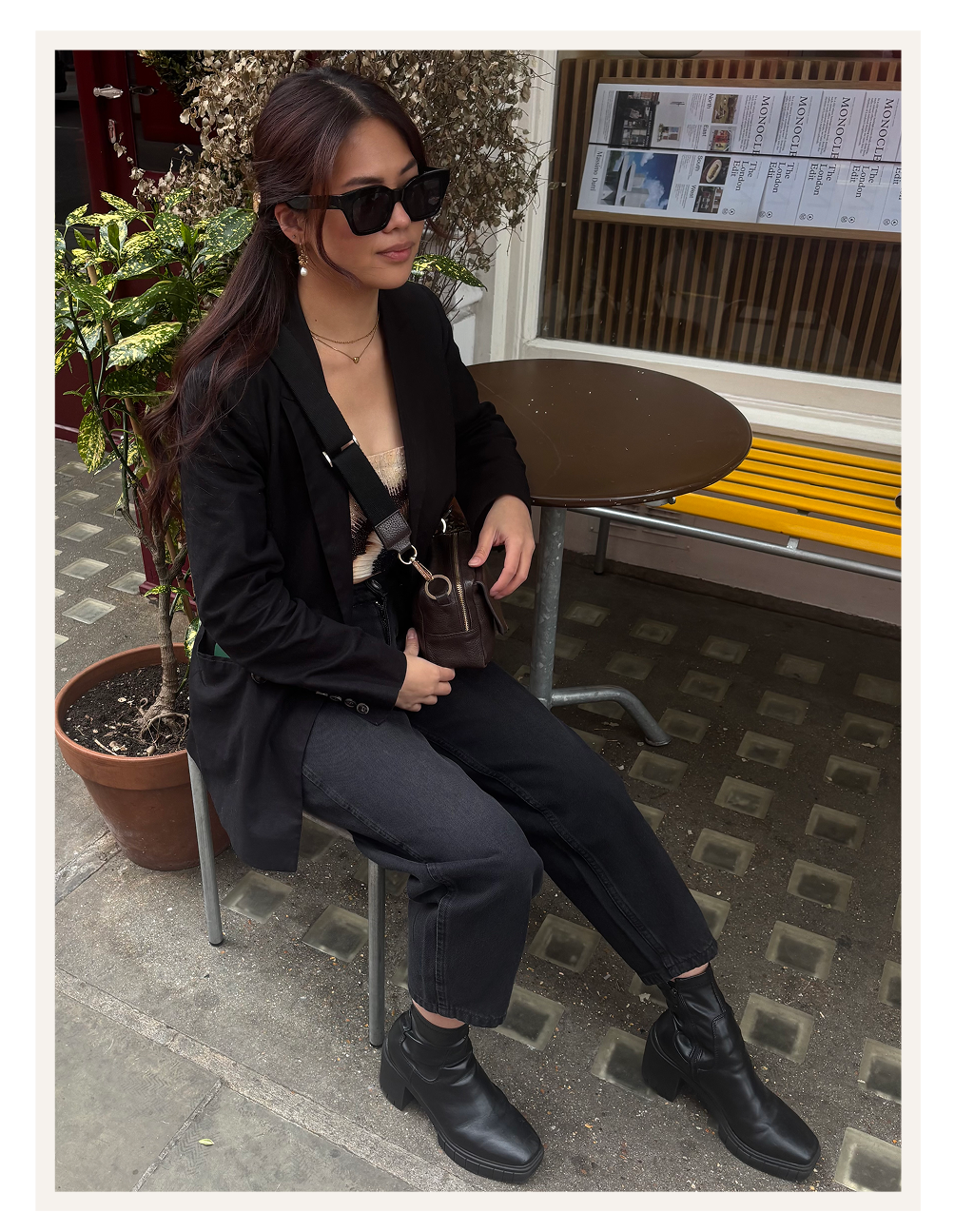 “Whistles petite Barrel Leg Jeans are a staple in my wardrobe as they are easily styled with both casual and smart options. Here I have styled them with one of my favourite Whistles blazers and elevated the look with an embellished bandeau to take them from day to evening.”
